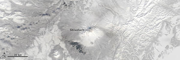 美国宇航局地球观测站今日公布了一组卫星照片,展示了俄罗斯思威纳驰火山(Shiveluch)持续爆发的景象。