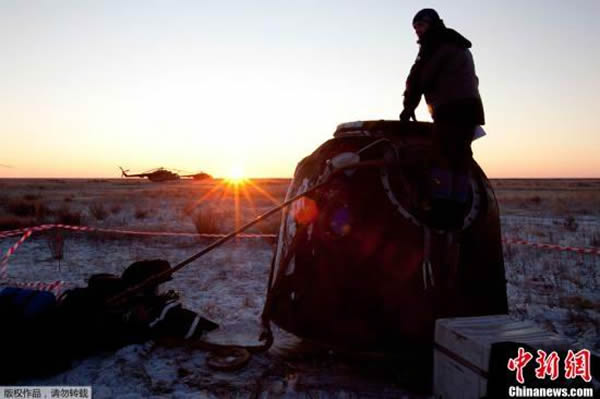 据外电报道,3名俄美宇航员在结束为期近6个月在国际空间站的工作后,于4月27日乘坐俄罗斯联盟号宇宙飞船在哈萨克斯坦大草原平安回到地球。
