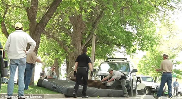 据英国《每日邮报》4月27日报道,近日,美国科罗拉多州立大学校园出现一头大黑熊。在慢悠悠地闲转的几个小时后,这头黑熊爬上学生宿舍前一棵大树上睡觉。发现它的学生赶紧联系了动物保护人员。不久赶到校园的保护人员考虑到直接将黑熊弄下树会惊吓学生,就给这头熊打了两剂镇静剂。在失去知觉后,这头黑熊没了平衡,从树叉上飘飘然地掉在地上铺的厚垫子上,随后被带出校园。