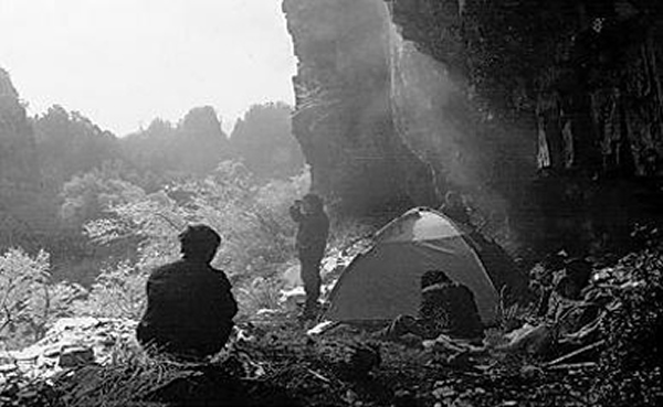 黎国华和队友在山里安营扎寨