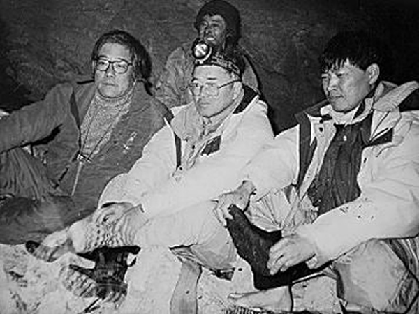1996年冬,黎国华与日本富士电视台企划制作部部长青木争雄、田一雄博士在深山洞穴