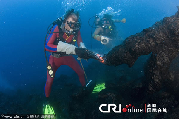 美国夏威夷,潜水员特平在工作。潜水员用双手触碰1000摄氏度的熔岩,而海底火山还在持续喷发。勇敢的潜水员潜入130英尺深的海底,寻找熔岩的源头,并用焊接手套和鱼钩来塑造炙热的驼鹿头。如果熔岩管破裂,或者朝他喷发,他将会有生命危险。雕刻家特平58岁,他的作品总是在完成之前就被喷发的火山所破坏。然而,这名熔岩海洋冒险潜水公司的创始人认为,人们应该知道他所创造的艺术品的长度,并请摄影师Doug Perrine帮忙,将这些创作景象展示给世人。