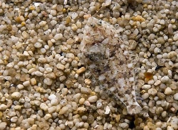 作为鲽形目鱼的一种,比目鱼适合于生活于海底。它们蜷缩在海床上,通常依靠斑点皮肤的辅助来帮助它们伪装,就像这只卵石中的比目鱼。那会保护它远离捕食者,但是也会让它们伏击猎物,比如小虾、蠕虫和鱼苗。比目鱼在幼虫的时候就开始自己生活,但是接近成年的时候会经历一次戏剧性的变化。小比目鱼一只眼睛转到了头的另外一侧,让它平面游动的时候两只眼睛都能够向上看。蒙特利湾水族馆的海产品监测数据,尽管它们伪装自己,许多比目鱼正在遭受过度捕捞的风险。如果你是比目鱼爱好者,选择太平洋而不是大西洋品种。