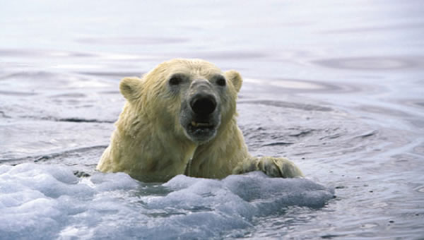 由于全球变暖,快速减少的海上浮冰让北极熊成为游泳马拉松运动员,新的GPS跟踪记录数据显示,北极熊能够持续进行长达数天的游泳,一次能够游上数百英里。