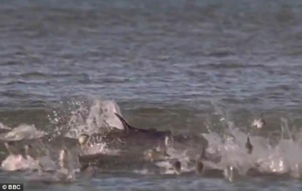 宽吻海豚像牧羊犬一样,将鲻鱼赶向渔民