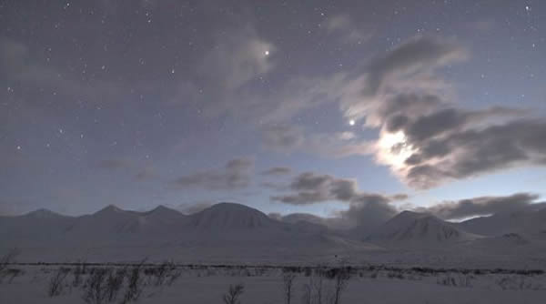 一位摄影师历时两个月,睡在加拿大冷育空地区北部一辆小型货车中,拍摄木星和金星排成一行时的惊人瞬间。当时,那里已是冻结温度,他却勇敢抵御严寒,坚守阵地,顺利完成这个艰难任务。