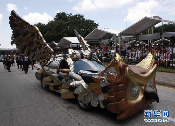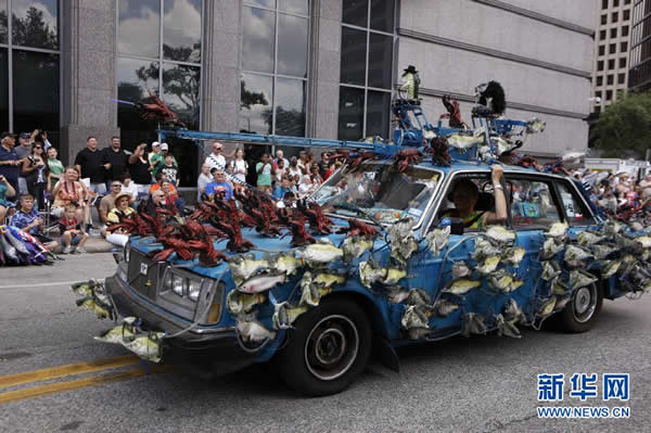 第25届美国休斯敦艺术车游行 来源: 神秘的地球 时间:2012年5月13日 16:30 5月12日,一辆艺术车行驶在美国休斯敦艺术车游行车队中 第25届美国休斯敦艺术车游行 第25届美国休斯敦艺术车游行 第25届美国休斯敦艺术车游行 第25届美国休斯敦艺术车游行 第25届美国休斯敦艺术车游行 第25届美国休斯敦艺术车游行 当日,第25届美国休斯敦艺术车游行在休斯敦市中心举行。共有近200辆经过装扮和改装的艺术车参加游行,这些样式独特、构思奇妙的艺术车辆,体现了环保、健康、娱乐、民俗等不同主题,吸引了沿途数万市民观看。 新华社 宋穹 上一篇 下一篇 TAG: 美国