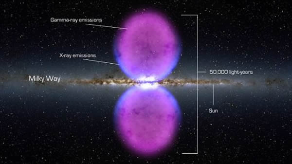 科学家指出从银河系平面向外延伸并放射伽玛射线的两个巨型泡泡可能是发现暗物质的关键