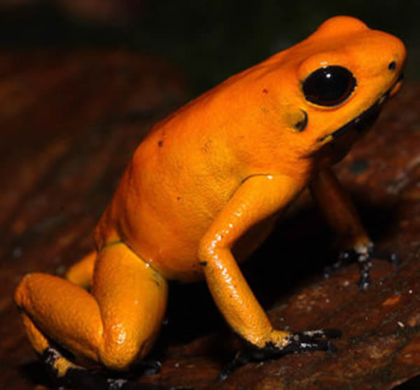 这种蛙类拥有亮黄色的皮肤,并且上面有一层致命的生物碱毒液覆盖。
