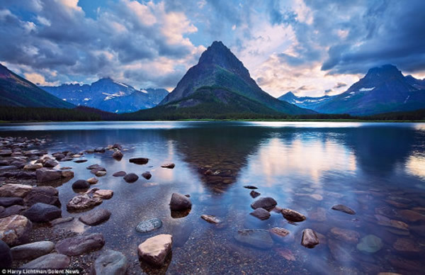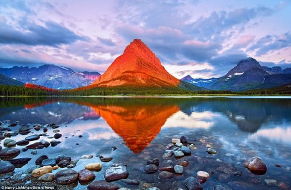 这是李奇曼在美国蒙大纳州的冰川国家公园拍摄的,当时正是日出时分。李奇曼称,这是一张经过普通相机拍摄的照片,只是他找到了恰当的位置,所以捕捉到如此罕见的美景。