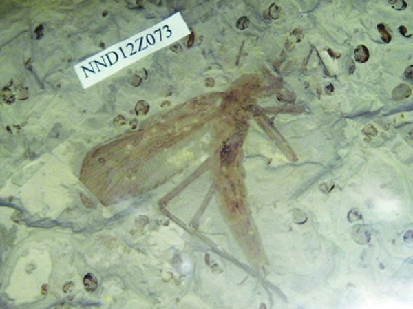 而在沙螽化石的旁边,摆放着鸣螽化石。现生类群非常稀少,在我国云南、四川等省以及印度东北部和北美落基山脉等地有分布。和沙螽一样,鸣螽也是出现在1.65亿年前,属于道虎沟昆虫群。“它和我们现在常见的蝈蝈很类似,都会叫。”张海春指着化石说。