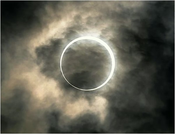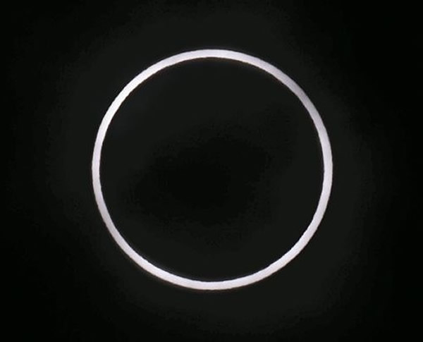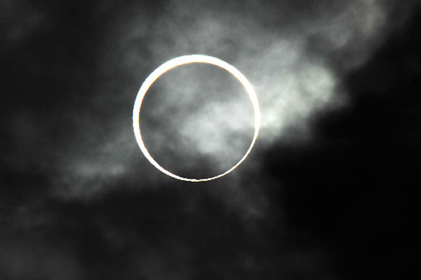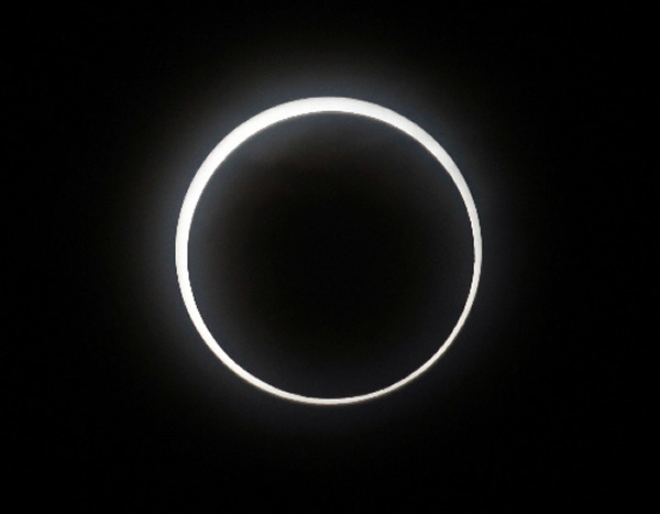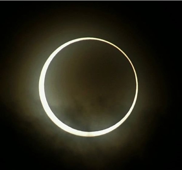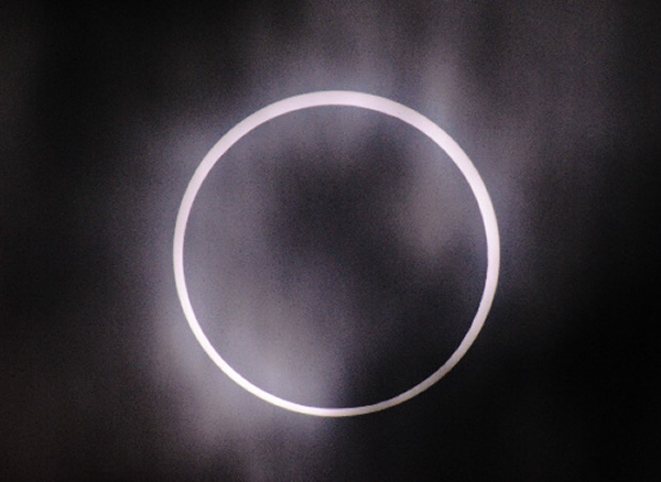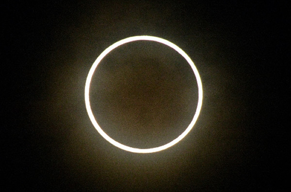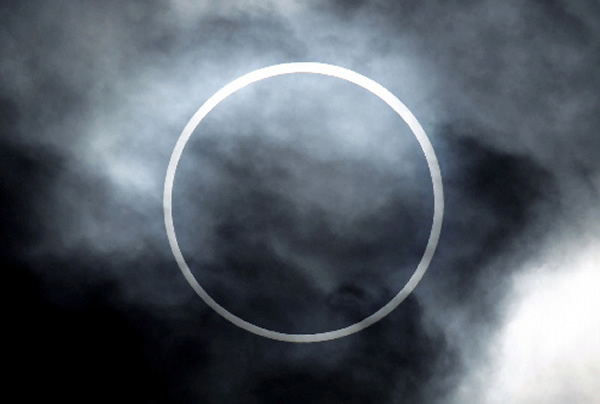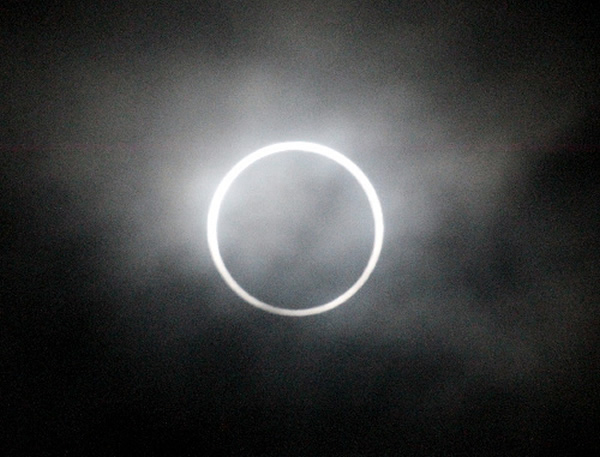 当地时间5月21日上午7点21分,在鹿儿岛县南大隅町的佐多岬拍摄到的“金日环食”。(摄影:岩下毅;来源:日本朝日新闻网)