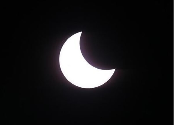 当地时间5月21日上午7点31分,在名古屋市中村区拍摄到的“金日环食”。(摄影:惠原弘太郎;来源:日本朝日新闻网)