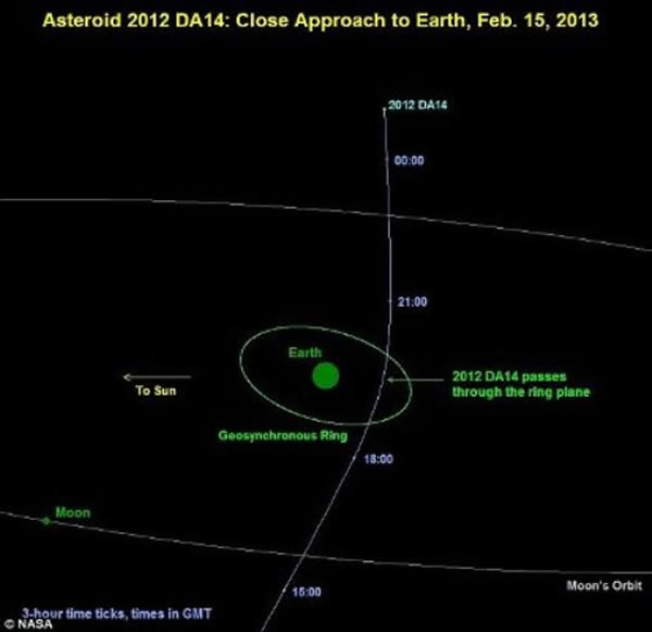 西班牙拉沙格拉(LaSagra)天文台的天文学家称,一颗新发现的小行星“2012 DA14”号将于2013年2月15日接近地球,可能偏离其轨道,撞上地球同步通讯卫星。