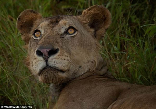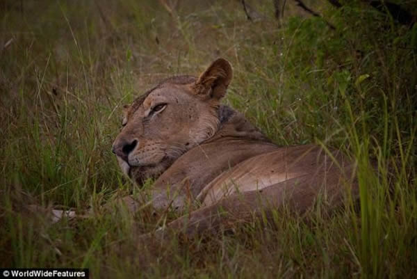 这头狮子已经疲惫不堪,当公园管理员接近时,它吃力地抬起头