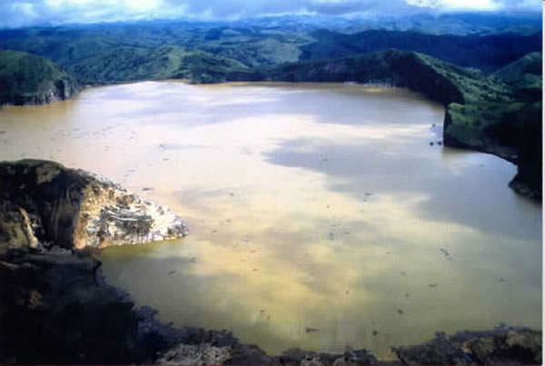非洲喀麦隆西北部一处陨坑湖泊非常深,且非常危险,尼奥斯湖侧翼的不活跃火山和顶部的岩浆坑足以释放大量的二氧化碳进入水中。事实上,这个湖泊中的拥有大量的二氧化碳,足以杀死人。1986年,尼奥斯湖释放出大量的二氧化碳气体,导致1700人窒息,3500个牲畜死亡。目前,一个排气管虹吸湖底的水,从而使湖水中二氧化碳含量处于安全指标。但是如果出现地震或者其他大型自然灾难,尼奥斯湖将释放出大量致命的二氧化碳气体。