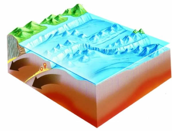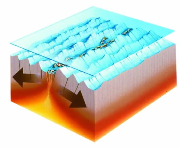 当海洋下方的构造板块慢慢向着互相远离的方向运动时,张裂运动就会发生。