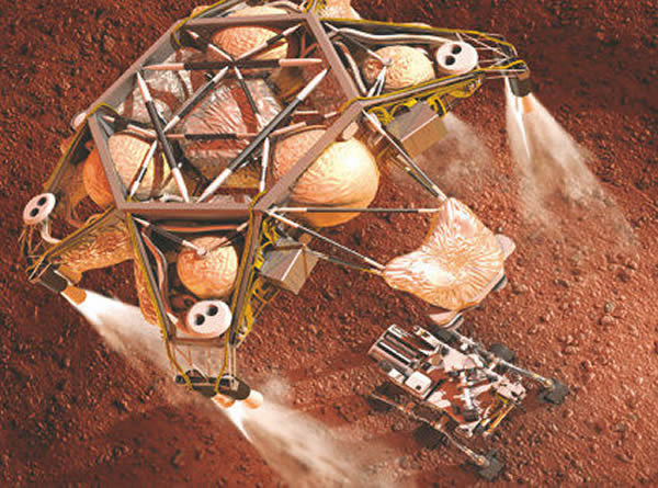 着陆区域:美国航空航天局的科学家开发出了一种能让火星车更好地从天空着陆到火星表面的方法:“太空起重机”。