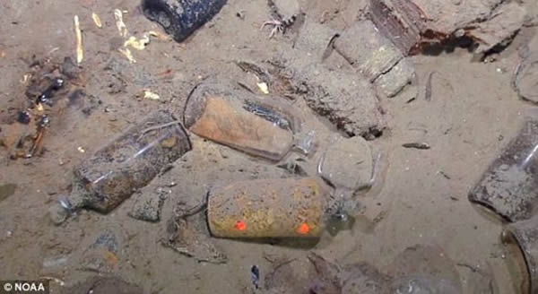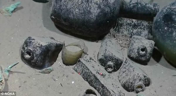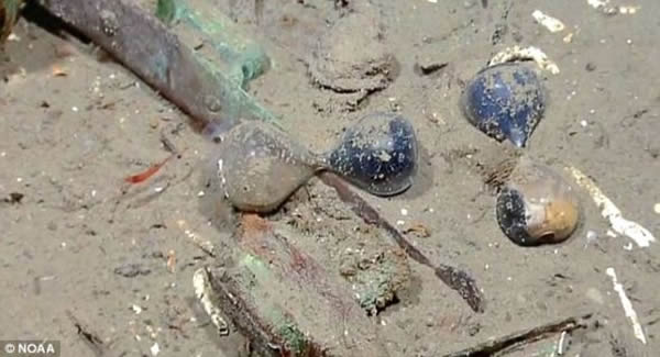 战斗:科学家不仅发现了玻璃瓶和陶瓷盘,还看到一些大炮和数箱步枪,这使他们猜测这是一艘战船。