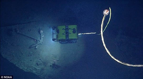 4月26日,包括研究人员和科学家在内的2000人在陆地上收看了美国国家海洋与大气管理局遥控名为“迷你大力神”的水下机器人进行探索的过程。他们还通过在线直播向支持者们播放了这一发现。