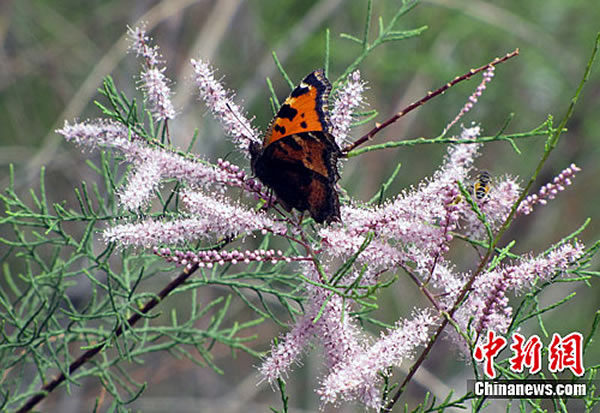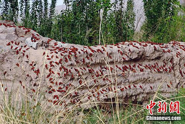 新疆和硕县红蝶谷中无数红蝴蝶群集