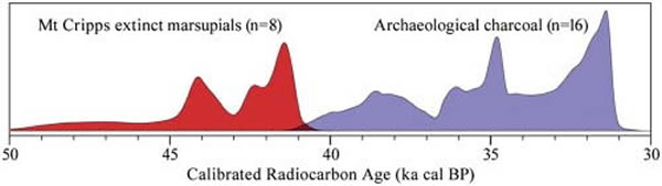 研究者利用放射性测年手段,并且对所利用的样品进行重新审视后,提出了一个新的理论。在现生生物中进行的碳14测年被用作一个衡量标准,利用此标准对骨骼化石进行分析,就会获得它们的时代信息。研究者利用的化石材料是袋鼠、袋熊和袋獾(Tasmanian Devil)的原始亲属,采用的技术方法是STAR和ANTARES加速装置,目的是为了获取化石最准确的年代信息。