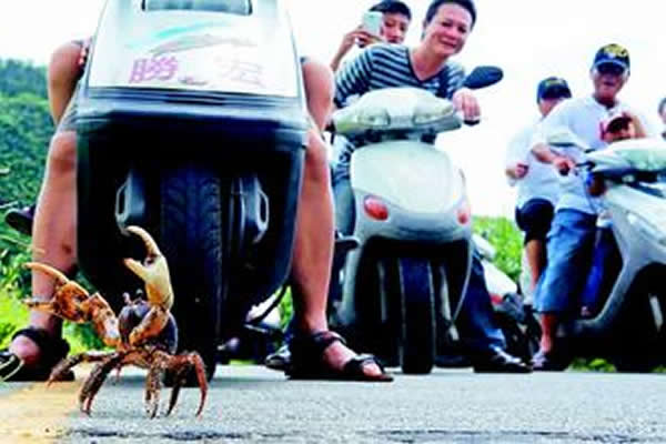 台湾游客为螃蟹让路 来源: 神秘的地球 时间:2012年5月30日 00:53 台湾游客为螃蟹让路 据台湾《联合报》报道,台湾一群绿岛游客,昨天在路上看见一只大型陆蟹“毛足圆轴蟹”,横行穿越马路,前往海边潮间带。路过摩托车驾驶员很有默契地紧急停车,且盯着它安全通过。 从事导游的吕缙宇,拍下这个“礼让”画面并发上网,感动许多网友,不断转贴,希望大家一起护蟹。 中新网5月29日电 上一篇 下一篇 TAG: 螃蟹