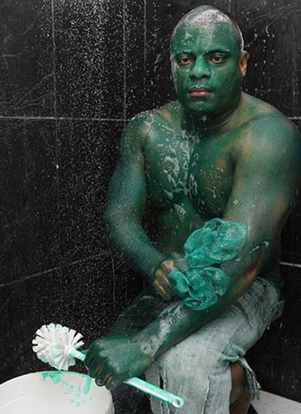 巴西一男子模仿绿巨人 全身涂满绿漆却无法洗掉