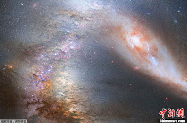 NASA公布银河系与仙女座星系相撞前的夜空景象效果图 来源: 神秘的地球 时间:2012年6月01日 13:52 NASA公布银河系与仙女座星系相撞前的夜空景象效果图 NASA公布银河系与仙女座星系相撞前的夜空景象效果图 NASA公布银河系与仙女座星系相撞前的夜空景象效果图 2012年5月31日,NASA公布了一副银河系与仙女座星系相撞前的夜空景象效果图。据报道,根据预测银河系与仙女座星系将会在37.5亿年后相遇并发生潮汐扭曲,大约40亿年后开始碰撞,最终在60亿年后融合成为一个星系。 中国新闻网 上一篇 下一篇 TAG: 仙女座 星系 银河系