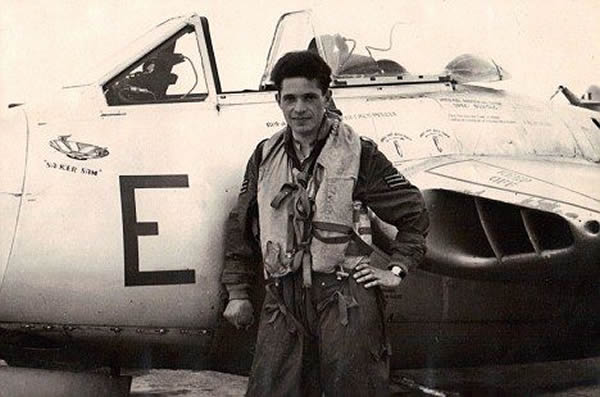 山姆飞碟:空军上士休斯发现一个不明飞行物(UFO),并得到雷达确认。随后,战友们就把一个UFO画在他的战斗机上。照片显示,休斯站在他的战斗机旁。
