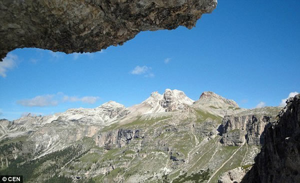 奥地利境内阿尔卑斯山脉多洛米蒂山:在地壳移动下,史前海洋沉积物质出现在山顶。