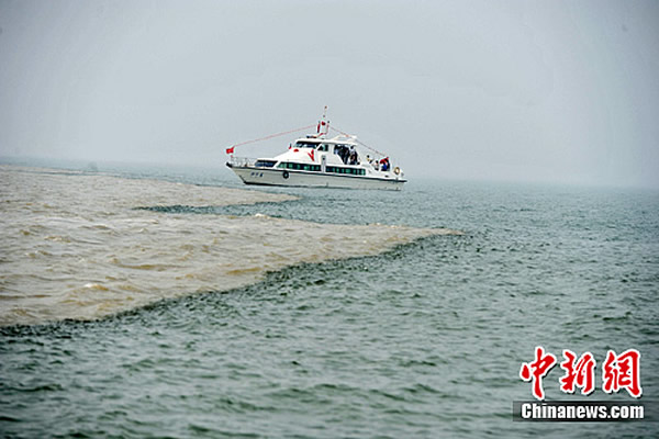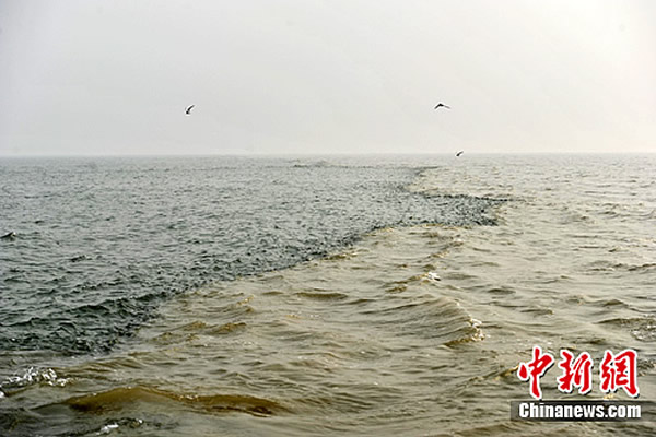 黄河入海口再现“泾渭分明”景观 来源: 神秘的地球 时间:2012年6月07日 14:44 黄河入海口再现“泾渭分明”景观 黄河入海口再现“泾渭分明”景观 6月6日,在山东省东营市黄河与渤海交汇处,黄色浑浊的河水冲击蔚蓝色海水的“阻挡”汇入大海,形成一道蓝黄交汇,泾渭分明的壮观景象。图为游客争睹黄河入海“泾渭分明”景观。 中国新闻网 上一篇 下一篇 TAG: 黄河