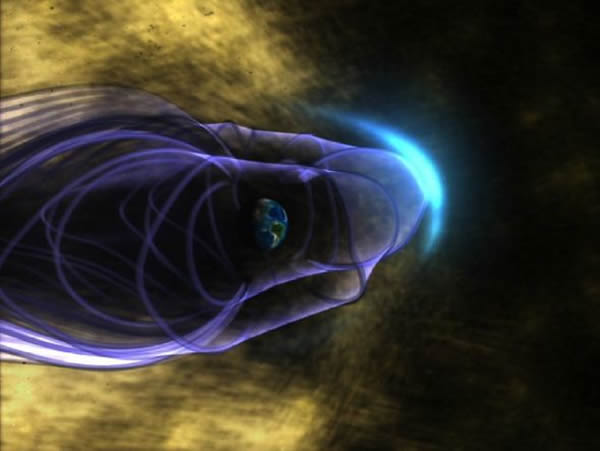 据美国太空网报道,每时每刻都有大量的太阳带电粒子冲入太空,时速高达每小时100万英里(约合160万公里),这就是所谓的太阳风。地球磁场在地球周围构建了一个巨大的“气泡”,阻隔了绝大部分此类粒子,从而保护这颗星球上的生命免受伤害。在地球的向阳一侧,太阳风剧烈地冲击着地球的这个纵深达数十万英里的保护层,形成一层弓形激波。