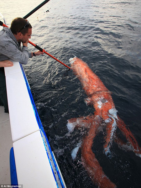 鱿鱼能长到这个长度很正常,但能真正看见就不同寻常了,因此这个超级大鱿鱼使麦克格拉尚感到非常吃惊。