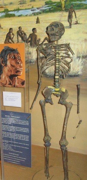 这是一具接近完整的150万年前早期人类骨骼,1984年卡莫亚-基穆(Kamoya Kimeu)在肯尼亚蒂尔卡娜湖边发现,是迄今挖掘发现最为完整的早期人类骨骼。