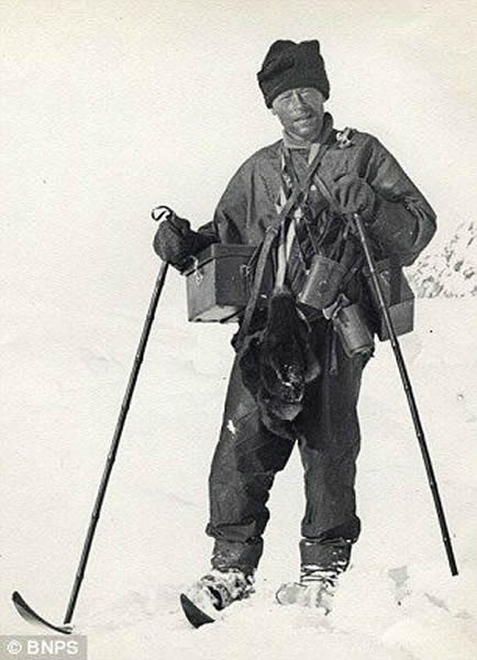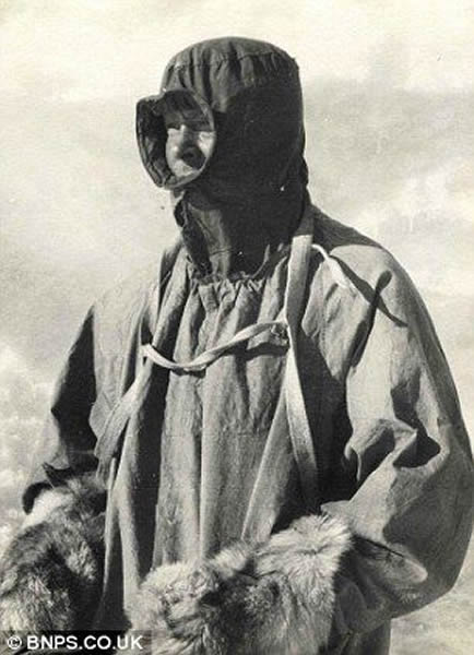 他为了抵御恶劣天气把自己包起来。当时,他困在南极长达8个月之久。