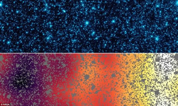 天文学家表示,斯皮策太空望远镜拍到的这些照片展示了这些燃烧的光是大爆炸后形成的最早的星星。正如我们所知道的那样,宇宙在大爆炸中诞生。