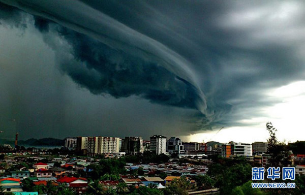 马来西亚沙巴州哥打基纳巴卢市上空出现“卷轴云” 来源: 神秘的地球 时间:2012年6月14日 16:12 马来西亚沙巴州哥打基纳巴卢市上空出现“卷轴云” 这是6月12日拍摄的马来西亚沙巴州哥打基纳巴卢市上空突现“卷轴云”(手机拍摄)。当日,哥打基纳巴卢上空出现壮观的“卷轴云”,持续约十五分钟,然后下起倾盆大雨。 新华社 上一篇 下一篇 TAG: 卷轴云 马来西亚