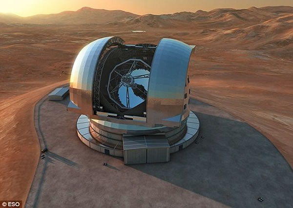 在智利高原的山顶上,目前正在实施一项巨型望远镜计划,由欧盟15个国家联合打造的堪称世界上最大的陆基望远镜,总耗资为8.72亿英镑,预计在2022年建成。据研究人员介绍,该望远镜的主镜面直径达39米,是目前最大天文望远镜的四倍,因此其观测能力也是超强的,足以观测到昏暗的小天体,甚至是太阳系之外的岩质行星。