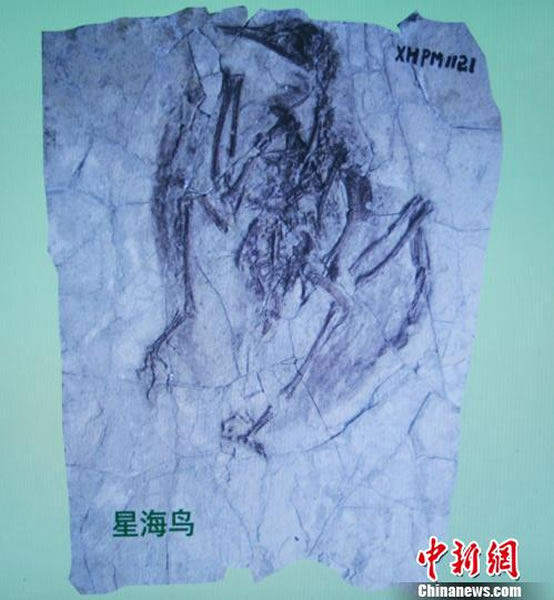 据了解,“星海鸟”化石于2010年末发现于辽宁省北票市上园镇四合屯地区义县组,因其馆藏大连星海而得名。