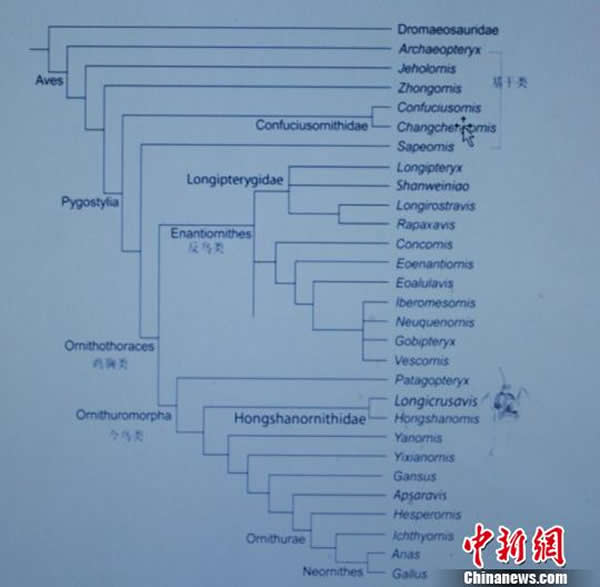季强表示,目前,中国地质科学院地质研究所的研究人员正与美国洛杉矶自然历史博物馆的著名鸟类专家开展合作研究,后期将通过与其它相关类群进行详细的特征对比,运用支序分类方法分析确定其具体分类位置及其与反鸟类和今鸟类的谱系演化关系,预计今年9月份有望取得最终成果。