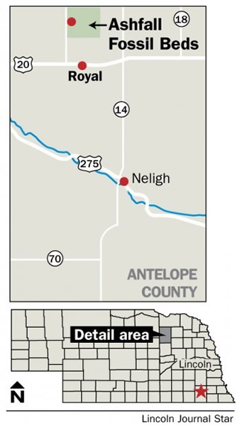 内布拉斯加州东北部罗亚尔附近的火山灰沉积化石床(Ashfall Fossil Beds)计划利用一个新的教育中心来吸引更多的游客——迪克逊化石遗产中心(Dickinson Fossil Heritage Center)拥有模拟挖掘区域、化石骨骼玩具、硅化木(包括一块重达800磅的茎化石)以及河流如何塑造内布拉斯加地质地貌的展示。公园负责人Rick Otto说,孩子们对参与冒险更感兴趣,但由于真实化石极为脆弱而不允许他们触碰,因此这里便成为了孩子们学习古生物学知识的乐园。