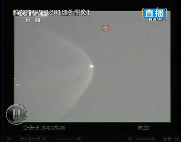 整流罩脱落时,遭遇的两个神秘发光体,像UFO一样神秘,许多网友在发微博的同时还直接附上了视频,标明了奇异景象出现的具体时间,并定格了画面——令人难解的一幕画面就出现在4分11秒左右。