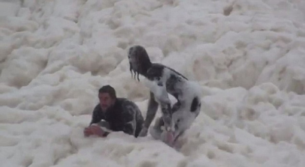 据报道,每隔数年这里就会形成这种海浪泡沫奇观,但泡沫不会存在过长时间。而此次形成的泡沫景观宽度达5公里。不少当地民众与游客来到此处,拍照留念,甚至有人脱光了衣服跳入其中,尽情地享受了一把“泡沫浴”。