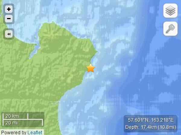 俄罗斯堪察加半岛东部海域发生6.1级地震 来源: 神秘的地球 时间:2012年6月24日 23:41 据美国地质勘探局网站消息,俄罗斯堪察加半岛东部海域北京时间24日11点15分发生6.1级地震,震源深度17.4公里。 上一篇 下一篇 TAG: 地震 俄罗斯
