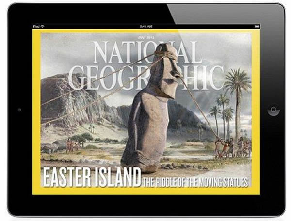 7月期《国家地理杂志》封面,展示了古人拉动巨石像的情形