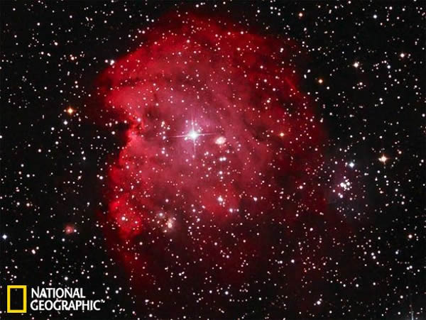 这是NGC 2174,也被称作“猴头星云”,这张照片是由一位英国业余天文爱好者拍摄并提交给《国家地理》网站的。在这张照片里,这个看似纤弱的星云形似猴子的头部,漂浮在无垠的宇宙之中。