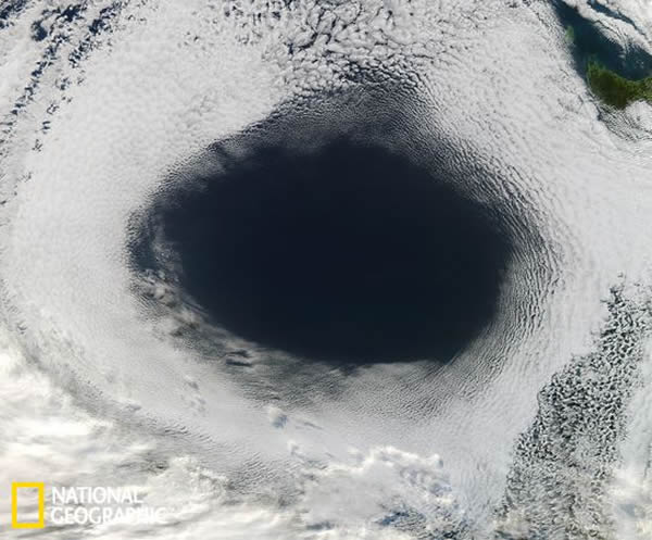 这是6月5日美国宇航局的“海洋”卫星拍摄的一个云洞,其位于澳大利亚海岸外的洋面上。