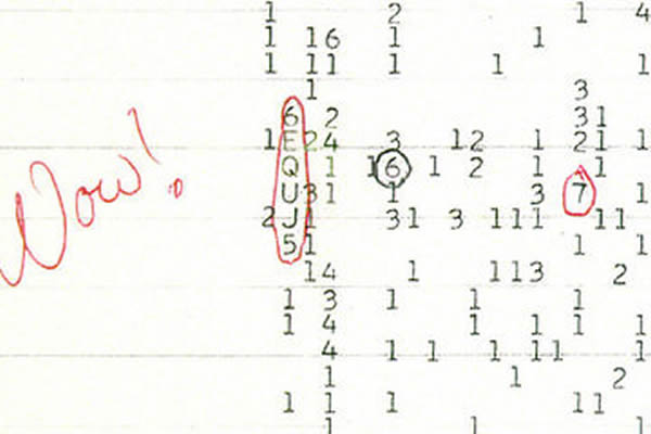 1977年,SETI科学家探测发现源自人马座的神秘WOW!信号,认为这是外星人发送的信息