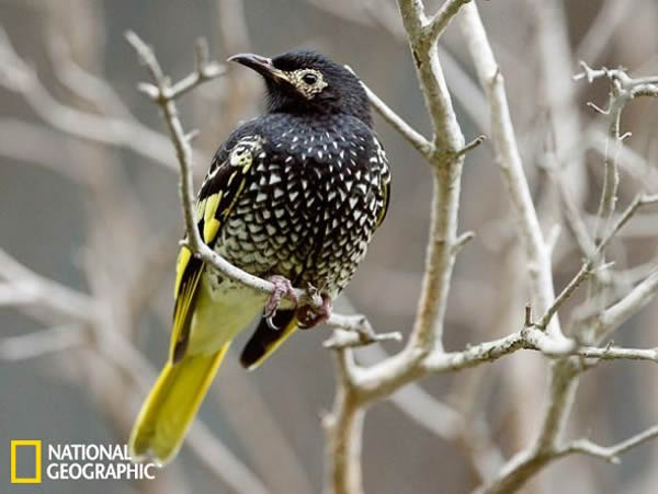 从这幅拍摄于悉尼塔瑞噶野生动物园的照片中可以看出,王摄蜜鸟的外表看起来十分冷酷。这种罕见的鸟类在2012年的红色名录上刚刚从“濒危”等级“荣升”为“极度濒危”等级。王摄蜜鸟是东南澳大利亚的本土生物,但是在过去的几十年中,这个物种以极快的速度走向消亡,这种生存于原始森林的鸟类慢慢因为干旱与当地逐渐渗入原始森林的农业活动而变得越来越孤立无援,并且在与其它物种的竞争中,逐渐败下阵来,数量一天天地减少。